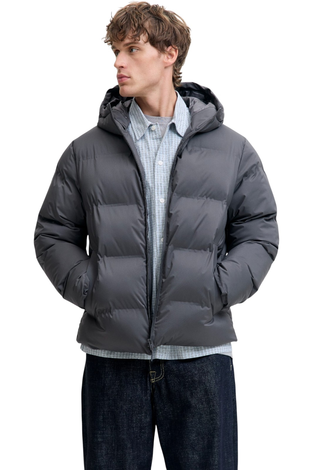 Geaca barbati JACK &JONES Kaito Puffer Jacket Bf, gri inchis - 12282300-Asphalt