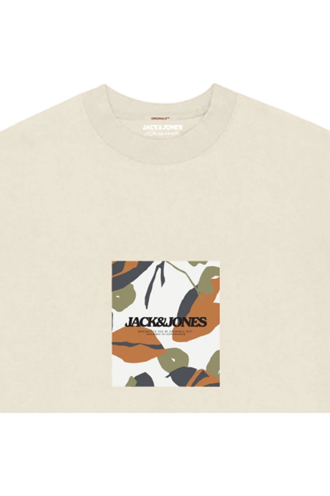 Tricou barbati JACK &JONES Avira AOP Crew, bej - 12281811-Antique White