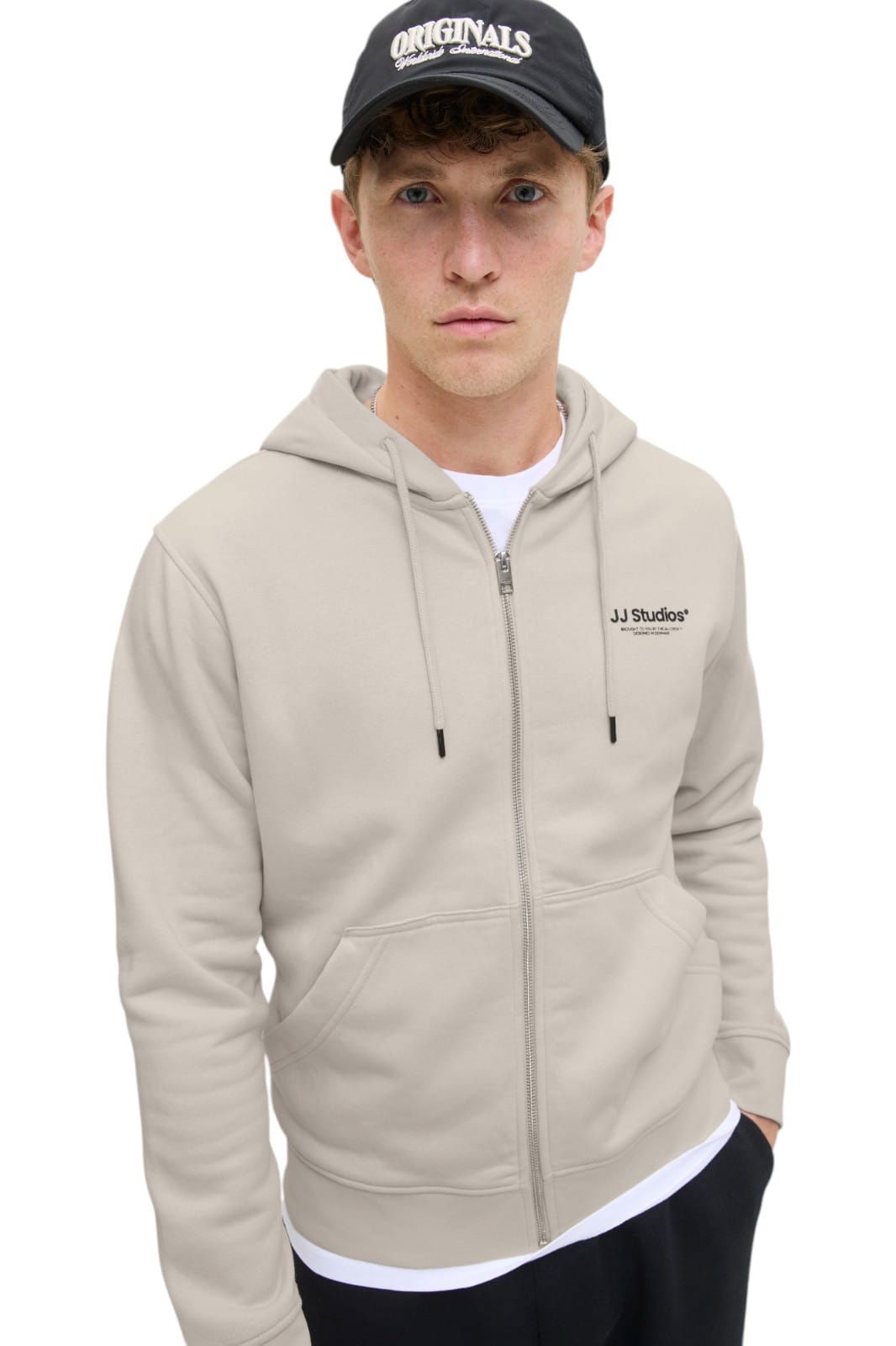 Hanorac barbati JACK &JONES Soho Hood Zip, bej - 12278794-Moonbeam
