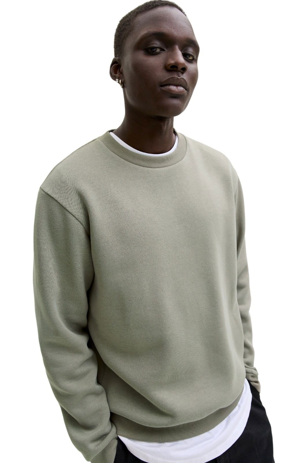 Bluza barbati JACK &JONES Bradley Crew, kaki - 12249341-Vetiver