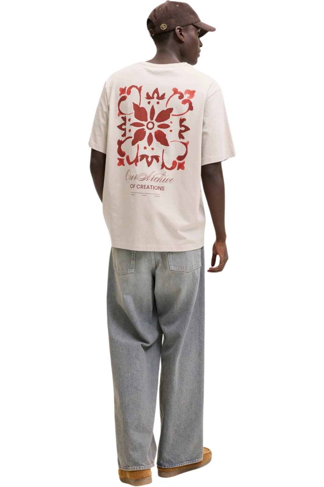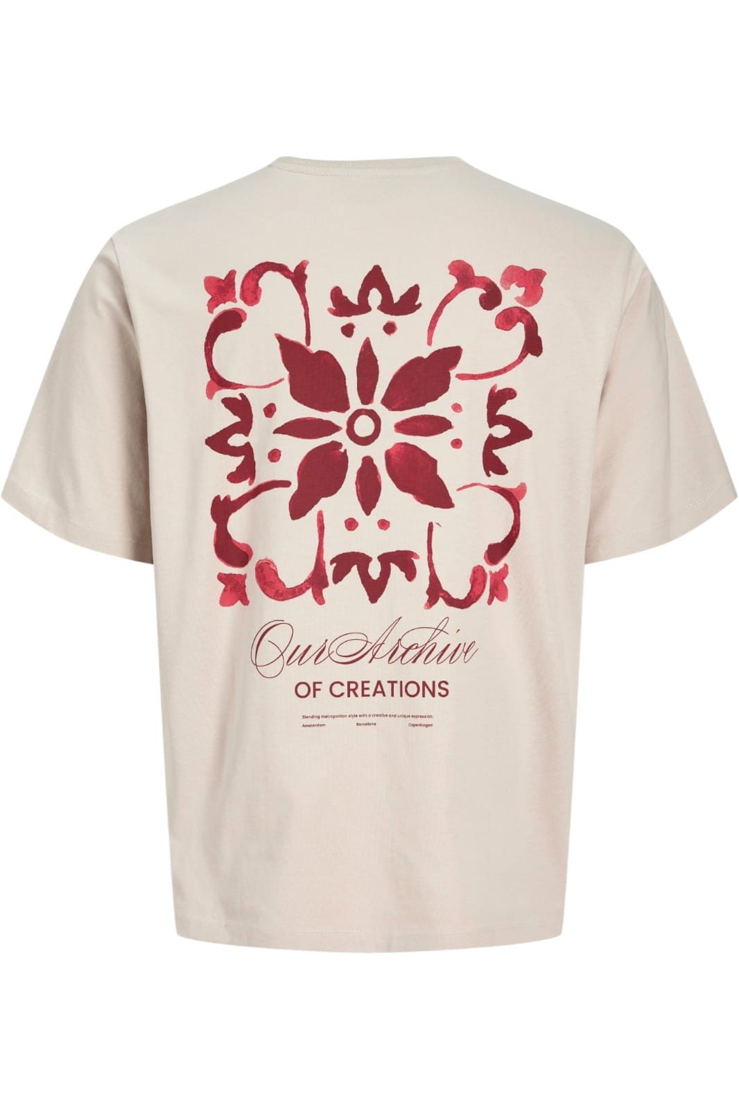 Tricou barbati JACK &JONES Art Print SS, bej - 12288095-Moonbeam