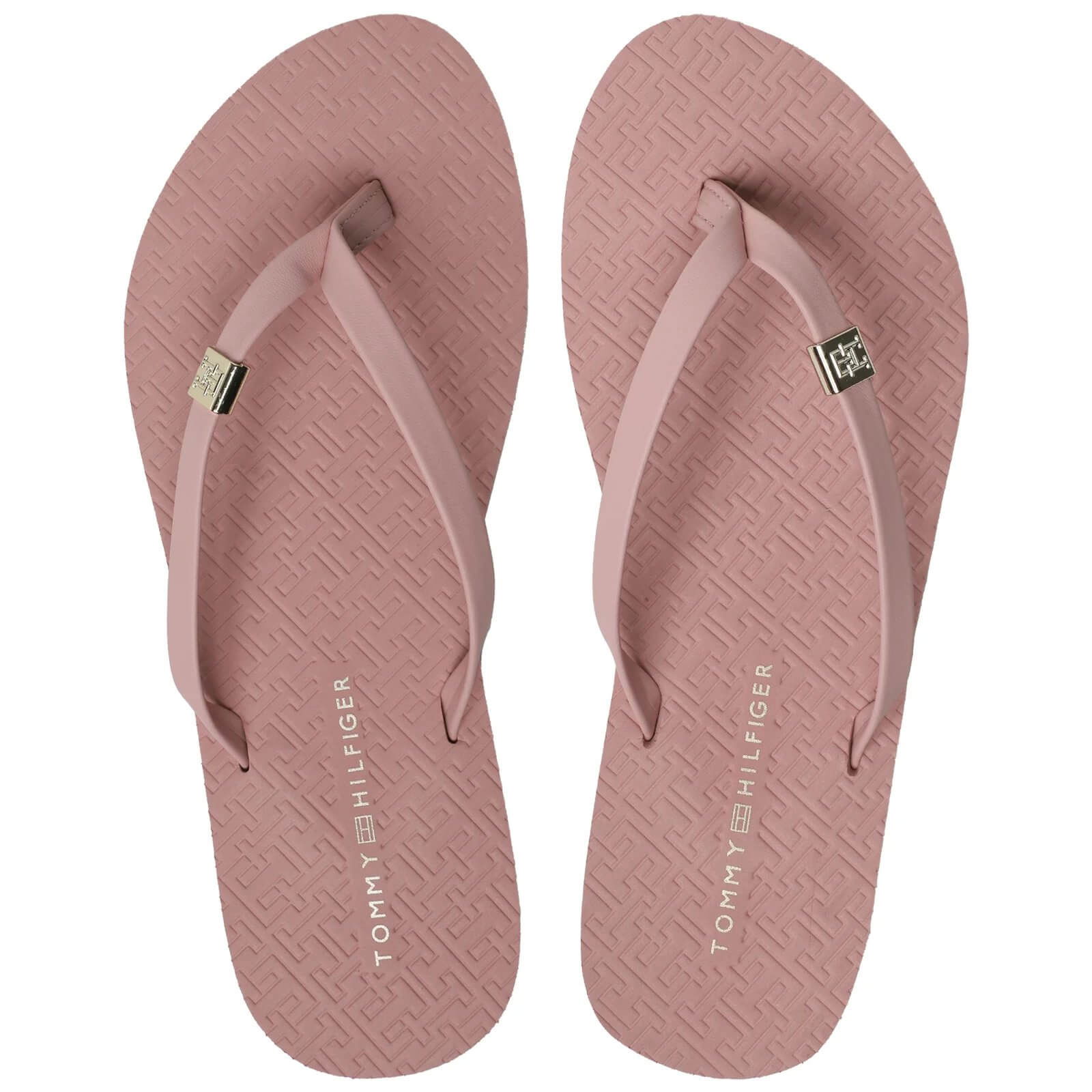 Slapi femei Tommy Hilfiger Monogram Flat Sandal, roz - FW0FW06964-TQS