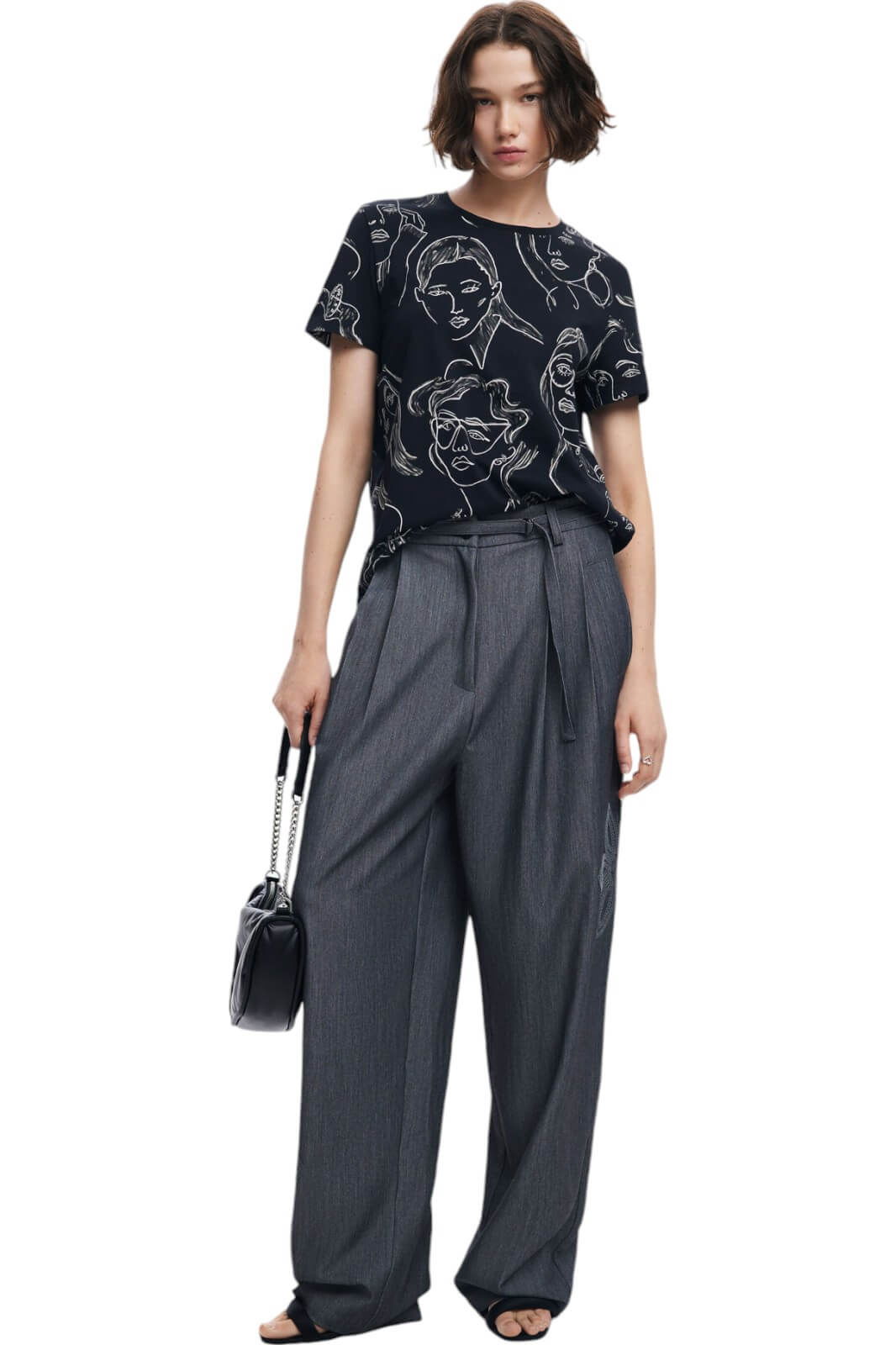 Tricou femei Desigual Caras, negru - 24WWTK54-2000